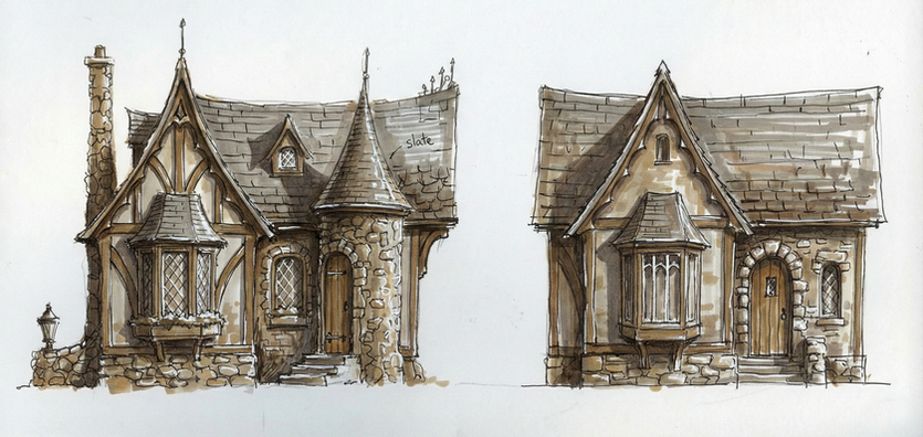 I designed a variety of themed bungalow concept's for a potential cottage-style resort. The design themes were geographic and period based.