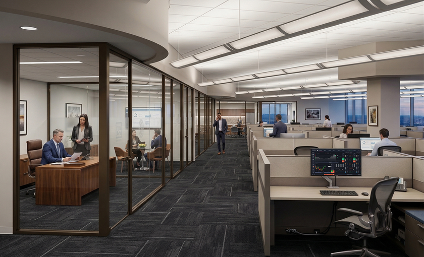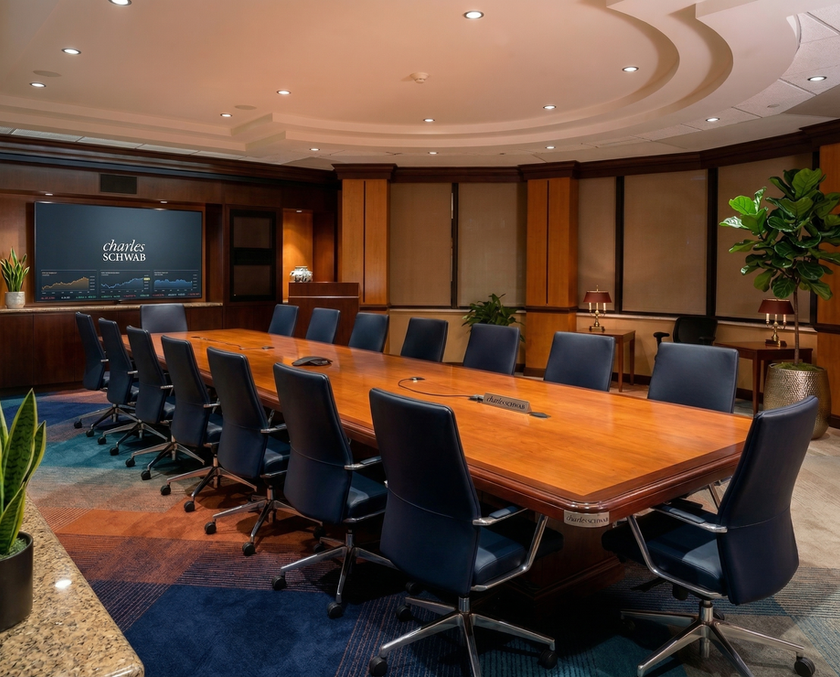 New building design for Charles Schwab, and interior design. Includes exterior building shell, structure, common areas and vertical penetrations. Interior design includes new rooms, space planning, systems furniture specifications, doors and finish schedule, lighting, electrical, plumbing, and more.